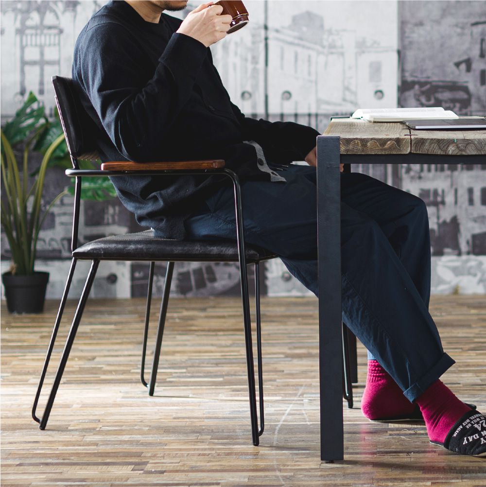 | 素材 | 鉄(粉体塗装)、山羊革、マンゴーウッド、ポリウレタンフォーム |