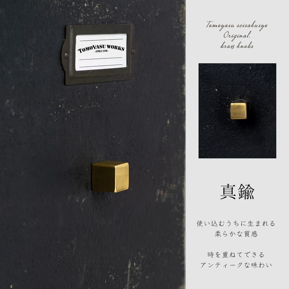 職人により一つ一つ手作りされた友安製作所オリジナルデザインの真鍮のつまみ。量産品にはない、あたたかみ、形や手触りはハンドメイドの最大の魅力です。