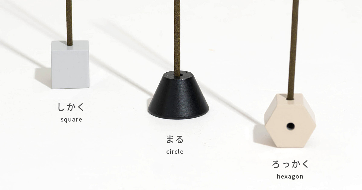 まる・しかく・ろっかくの3種から選べ、その日の気分や使用するお香に合わせて楽しむことができます。