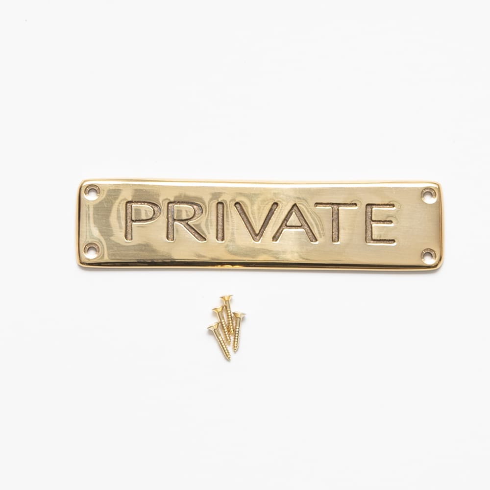 真鍮製の「PRIVATE」スクエアプレート。厚みのあるプレートは木の扉と合わせればクラシカルに、固い素材と合わせればモダンな雰囲気に。住宅や店舗のドアにご活用ください。