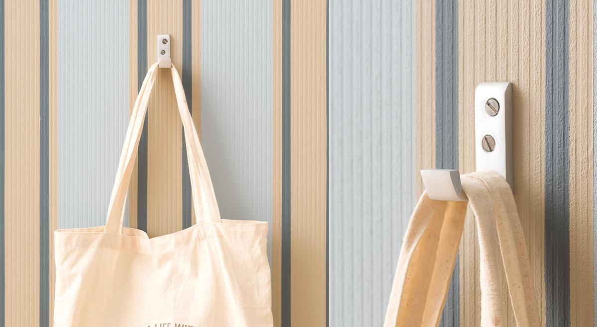 スペースを有効活用できる壁掛けフックは置き場所に困りがちな帽子や小物の収納にぴったりです。ハンギングフックでオシャレに"見せる収納"を。