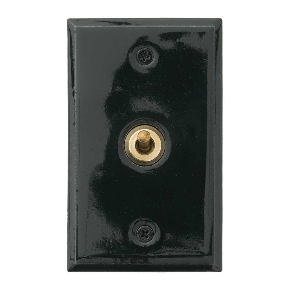 アンティークのスイッチのように、トグル(突起)を押し上げたり下げたりしてON/OFFを切り替えるトグルスイッチとプレートがセットになったおしゃれなスイッチプレートセット。