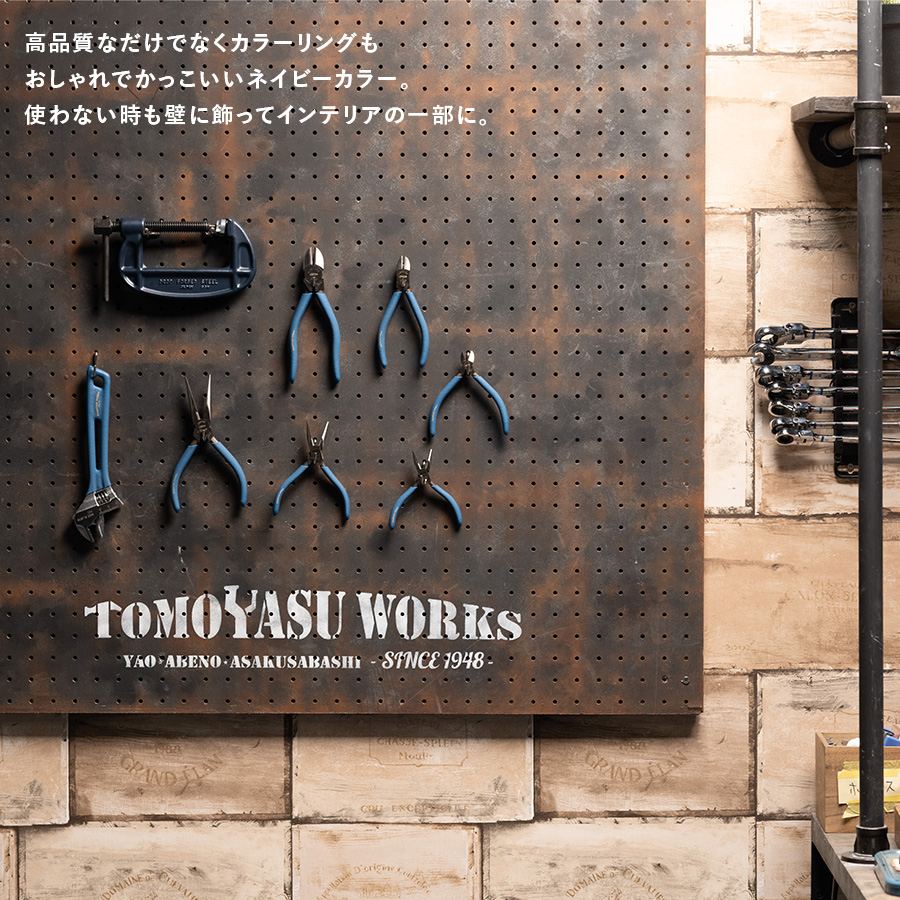 高品質・安全性だけでなく、カラーリングもおしゃれでかっこいいネイビーカラー。赤やオレンジが多い工具の中でネイビーカラーは人と被りにくく、たくさんの職人さん達がいる現場でも紛失しにくいそう。使わない時は壁に飾ってオシャレなインテリアアイテムに。