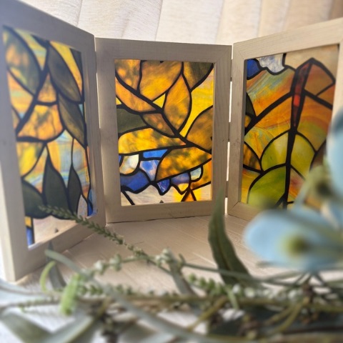 すりガラス調とステンドグラス調のデザインの中から、お好きな柄を組み合わせてオリジナルの柄を作れます。