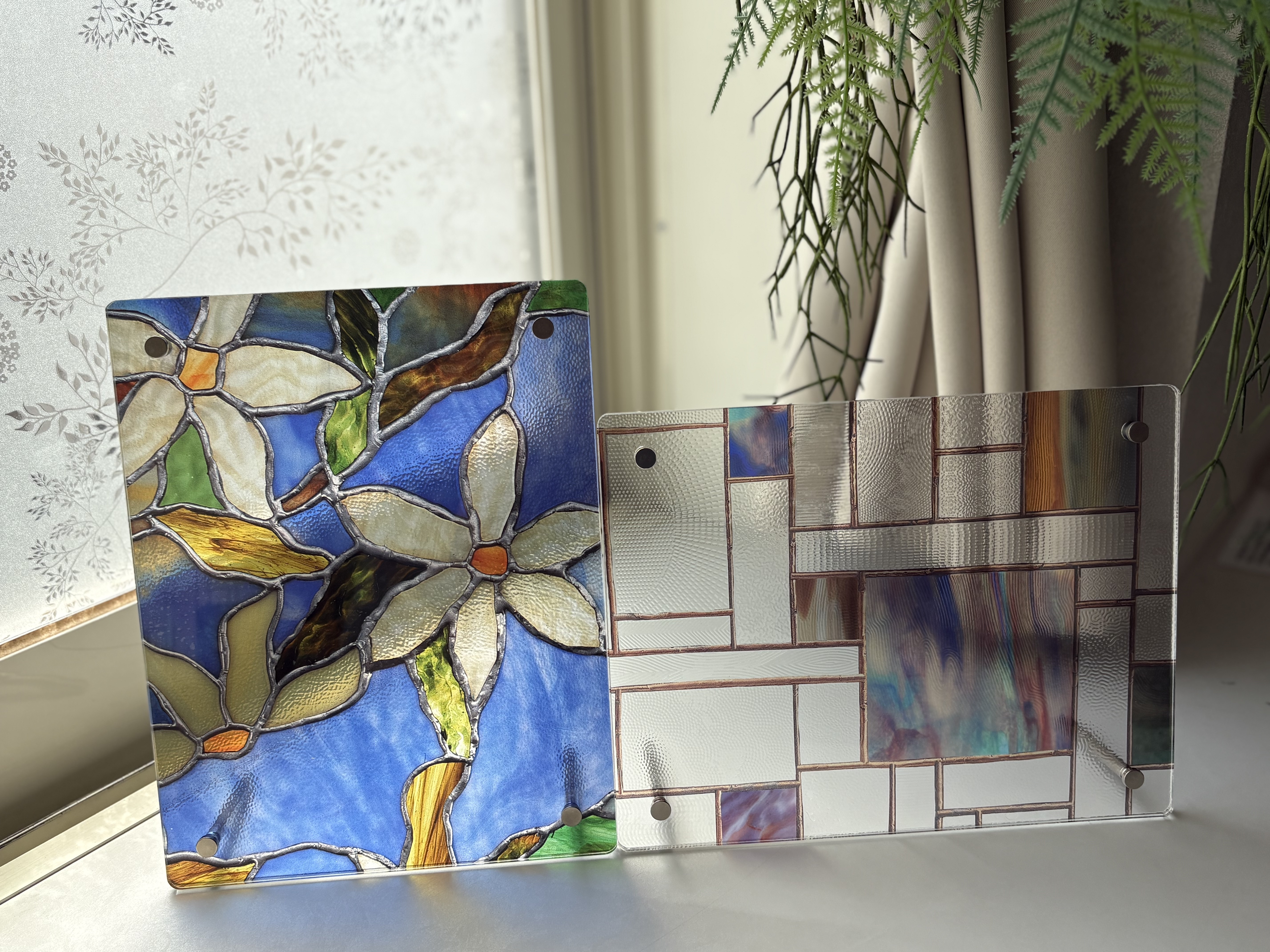 水で貼れるステンドグラス風ウィンドウフィルムの貼り方体験と、ウィンドウフィルムを使っておしゃれなフォトフレームを作ります。